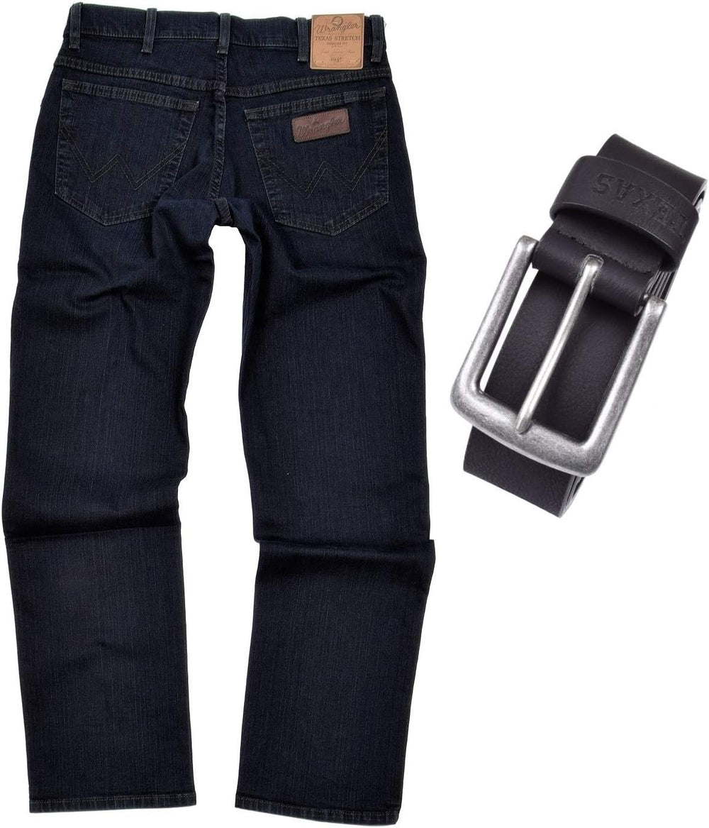 Wrangler Texas Stretch Herren Jeans Regular Fit inkl. Gürtel (W40/L36, Blue Black)