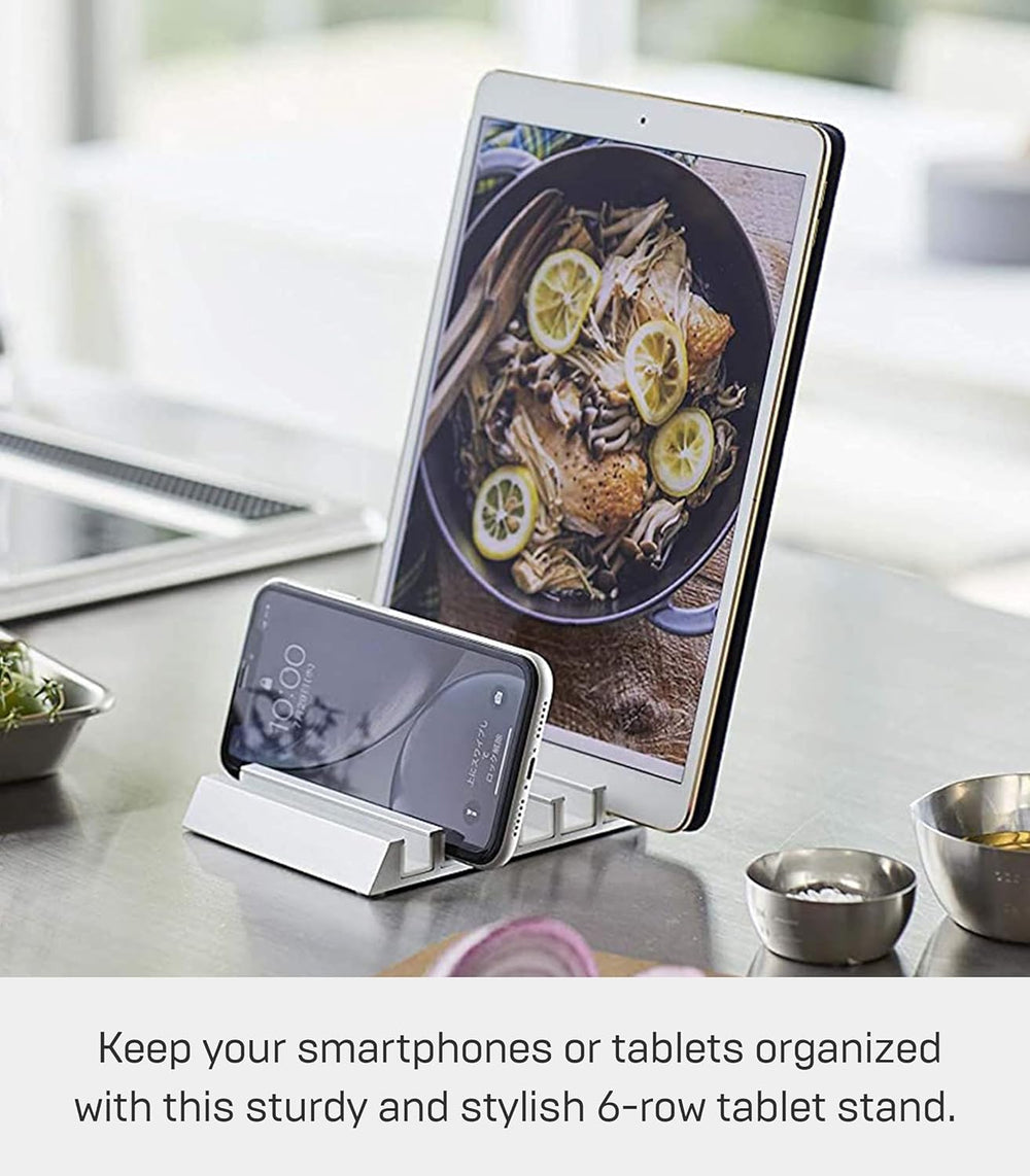 Yamazaki Tower 5274 Tablet-Ständer, Smartphone and Tablet Stand, Weiss, Aluminium/Silikon, 10 x 13 x