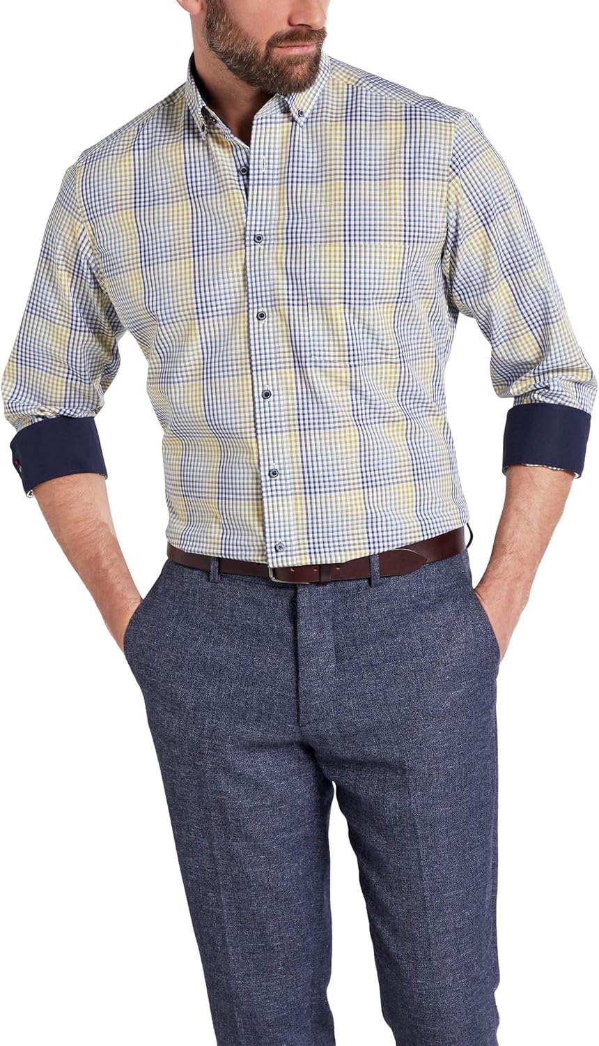 ETERNA Langarm Hemd Karo Popeline mit Tasche, Modern Fit 41 Gelb, 41 Gelb