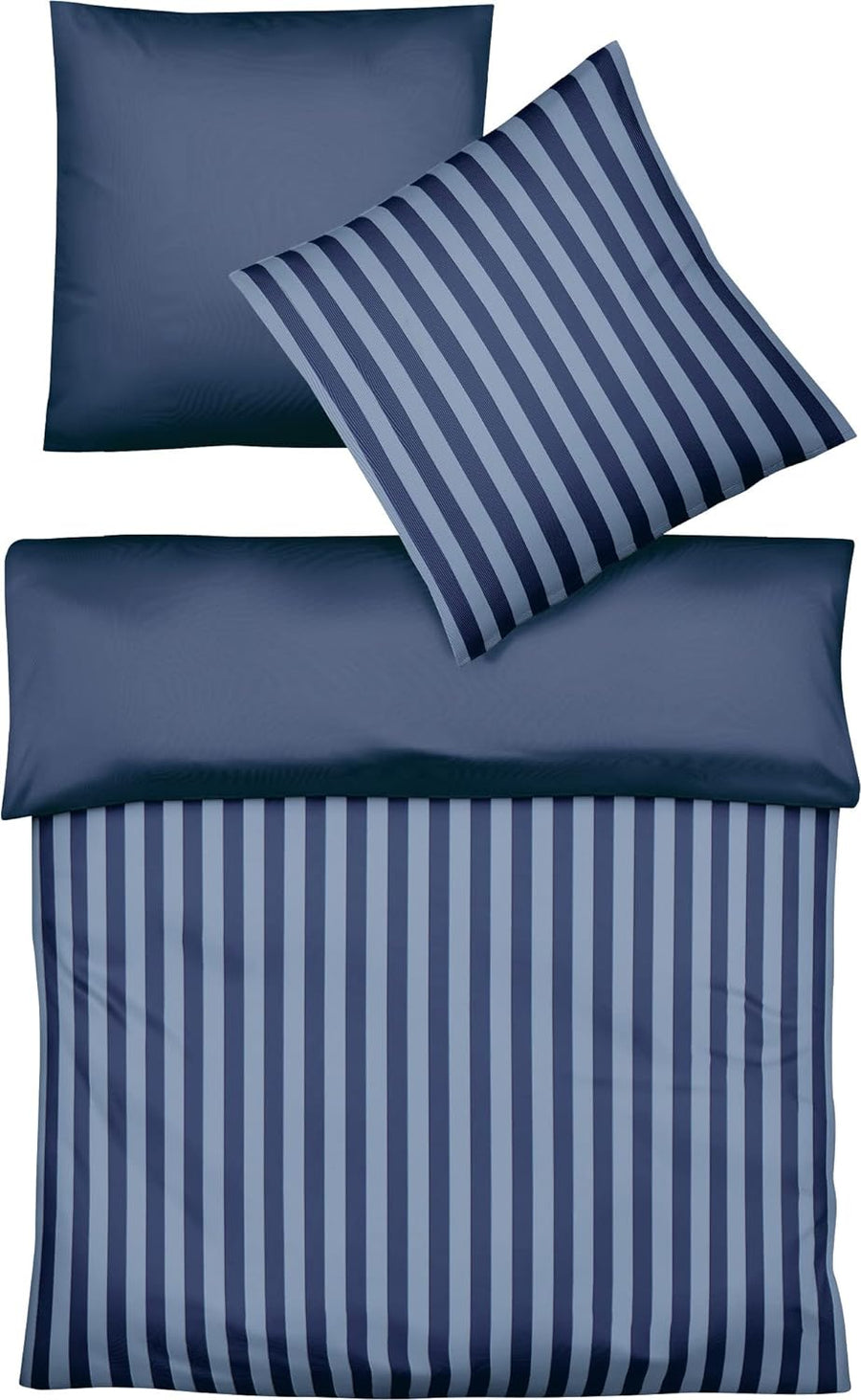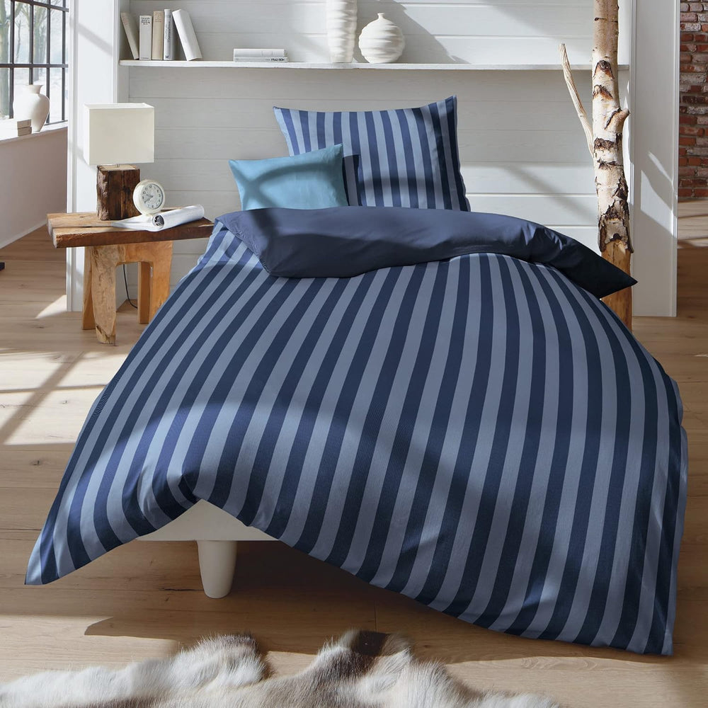fleuresse Wendebettwäsche Flanell buntgewebt dunkelblau-weiss Grösse 135x200 cm (80x80 cm)