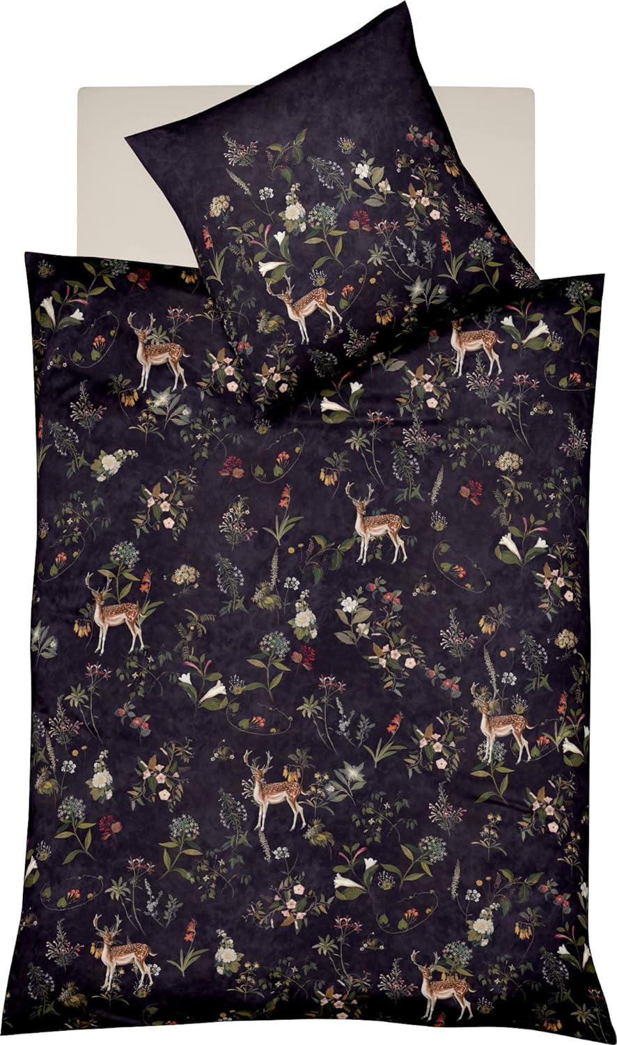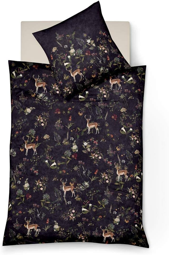 fleuresse Wendebettwäsche Mako-Satin schwarz-Gold Grösse 155 x 220 cm (80 x 80 cm), 155 x 220 cm