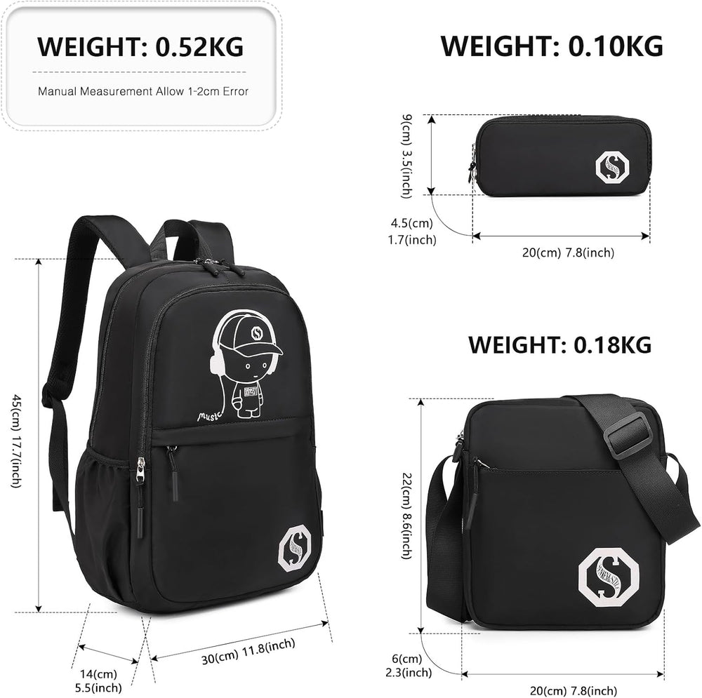 KONO Leuchtender Schulrucksack 3-in-1 Set, Anime Jungen Schulranzen Umhängetasche Federmäppchen, 15.
