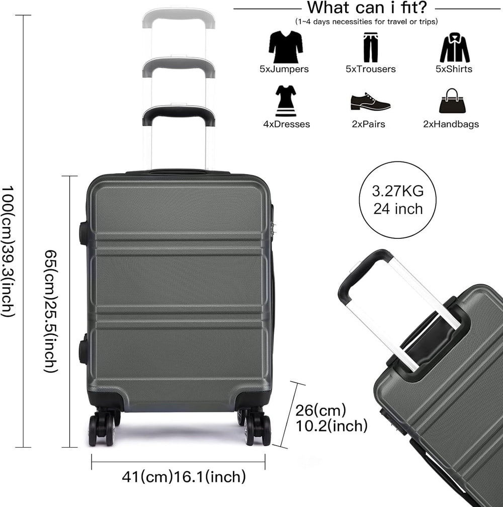 Kono Reisegepäck Set Leichter ABS-Hartschalen-Trolley mit 4 Spinnrollen und TSA-Zahlenschloss Grau/B