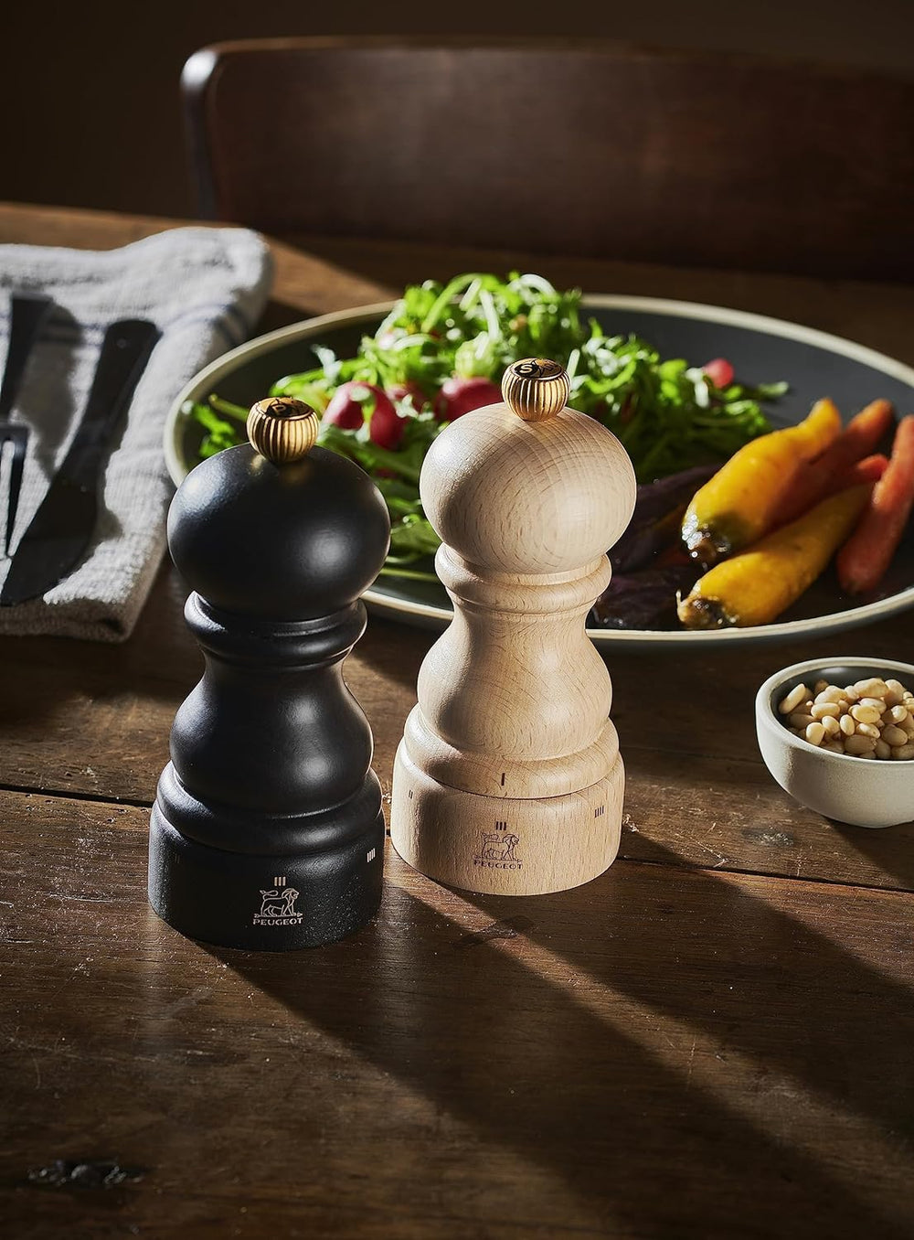 Peugeot Paris Antique Moulin à sel manuel en bois de hêtre patiné, Réglage mouture classique, Couleu