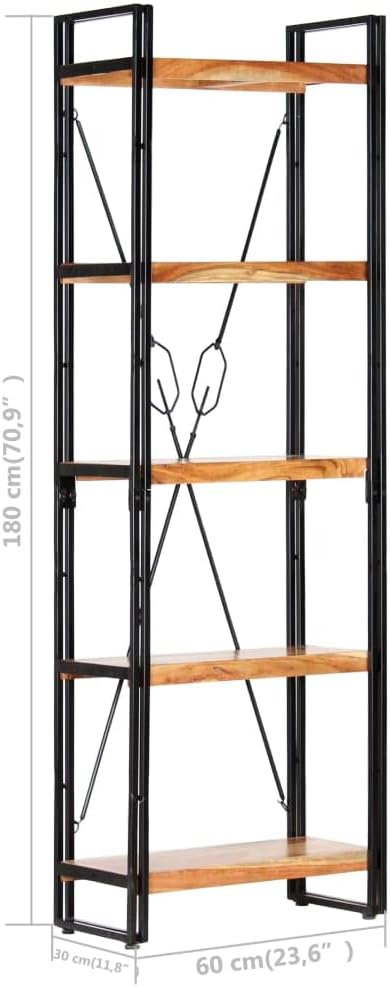 vidaXL Akazienholz Massiv Bücherregal 5 Fächer Industriestil Standregal Büroregal Wandregal Holzrega