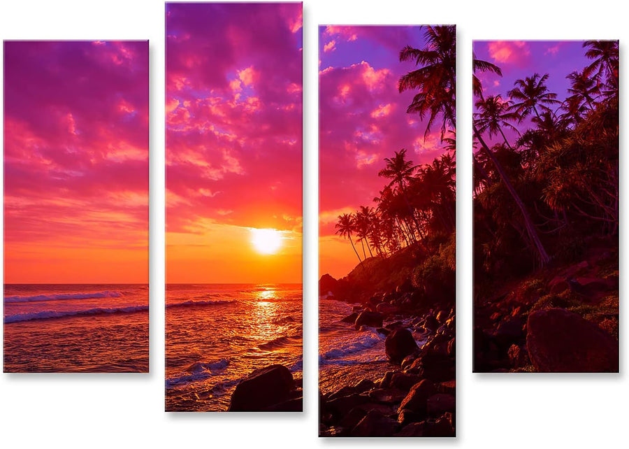 islandburner Bild auf Leinwand Sonnenuntergang Am Tropischen Strand Mit Palmen Silhouetten Bilder Wa