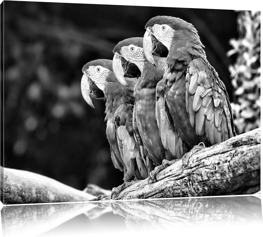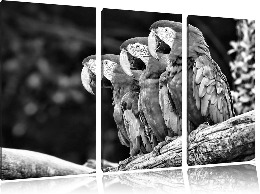 Papageien auf AST als Leinwandbild/Grösse: 3 Teilig (120x80) cm/Wandbild/Kunstdruck/fertig bespannt