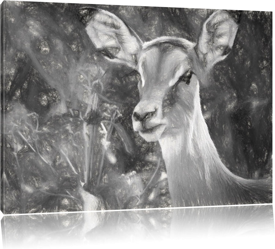 niedliches Reh vor hoher Wiese Leinwand, XXL riesige Bilder fertig gerahmt mit Keilrahmen, Kunstdruc