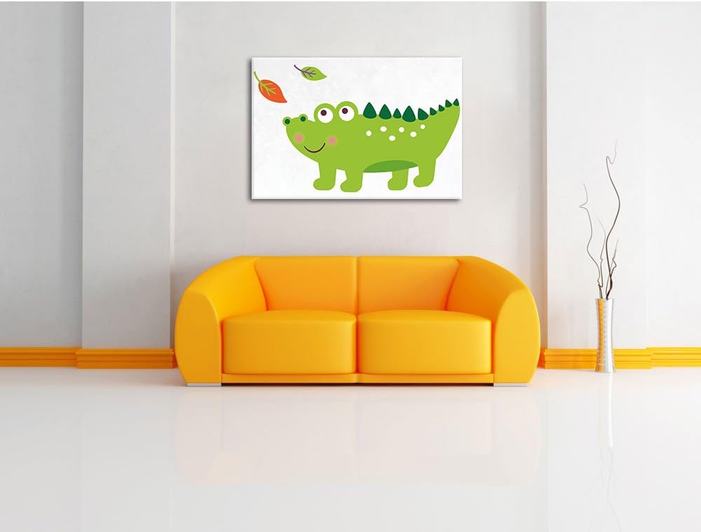 Niedliches Krokodil weiss, Format: 100x70 auf Leinwand, XXL riesige Bilder fertig gerahmt mit Keilra