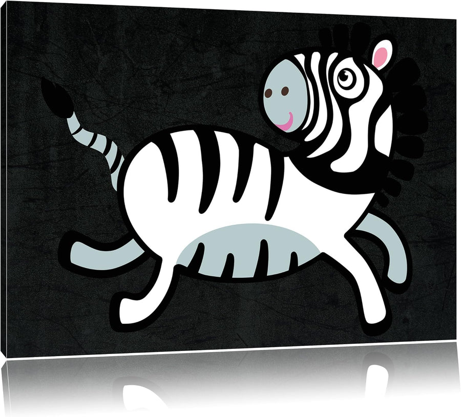 Niedliches Zebra schwarz, Format: 100x70 auf Leinwand, XXL riesige Bilder fertig gerahmt mit Keilrah