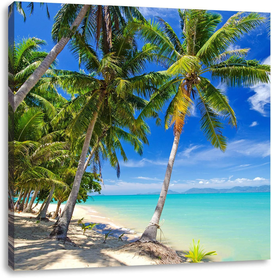Palmen am Strand, Format: 70x70 auf Leinwand, XXL riesige Bilder fertig gerahmt mit Keilrahmen, Kuns