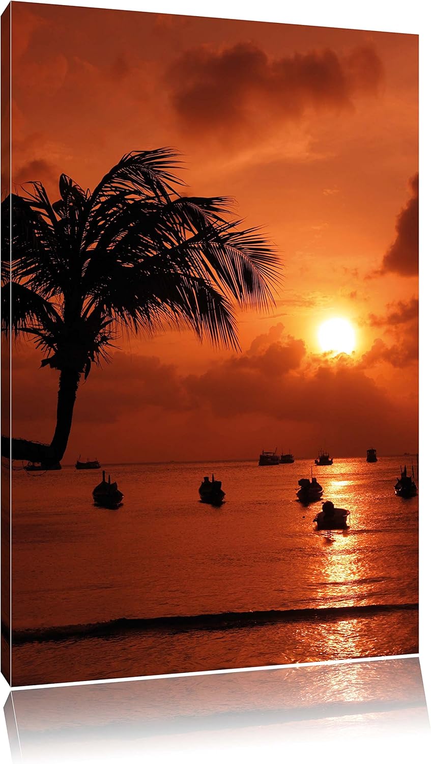 Palmen über dem Meer, Format: 70x70 auf Leinwand, XXL riesige Bilder fertig gerahmt mit Keilrahmen,