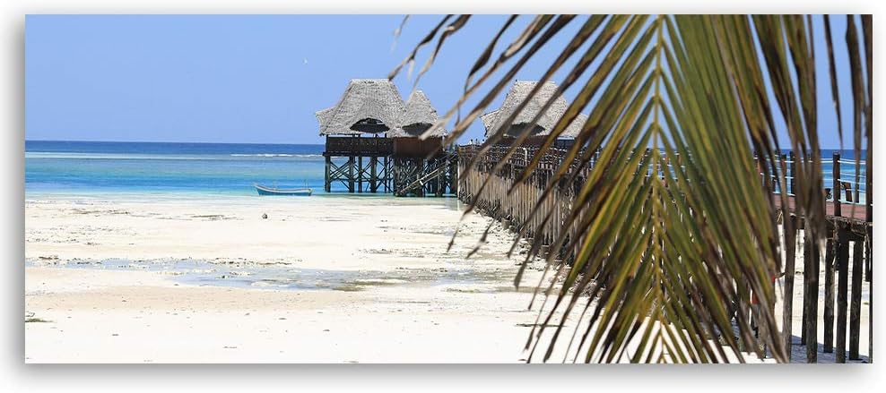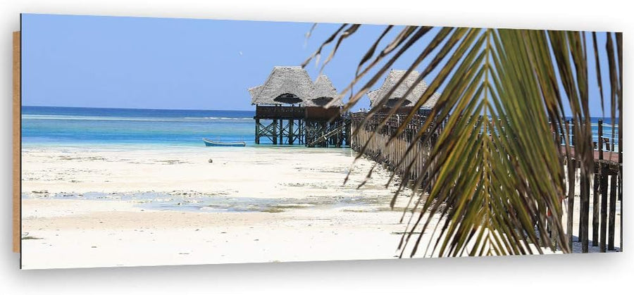 Wandbild Palmen Modern Deko Kunst Bilder Sansibar Beige 120x40 cm Deko paneel 120x40 cm Beige_A, Dek