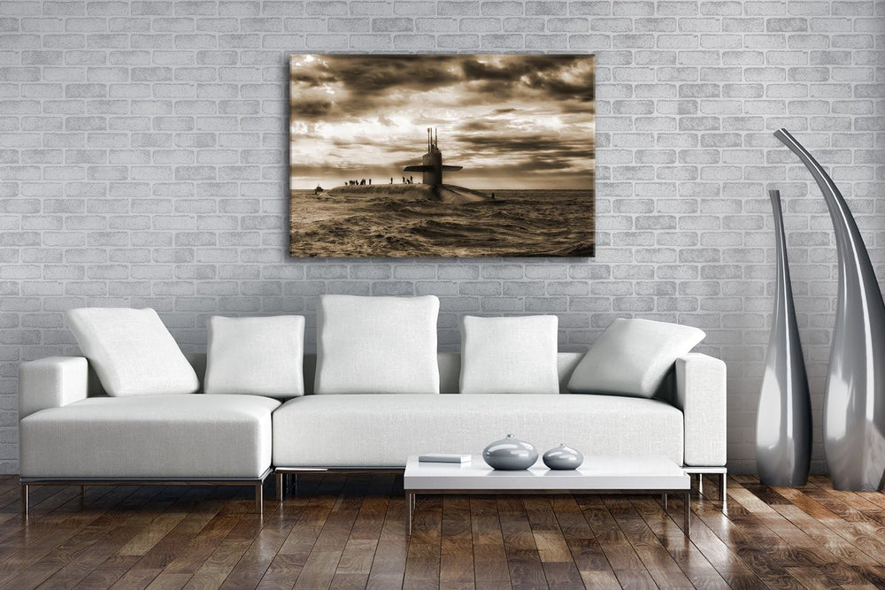 deyoli Militär U Boot auf offener See Format: 100x70 Effekt: Sepia als Leinwandbild, Motiv fertig ge