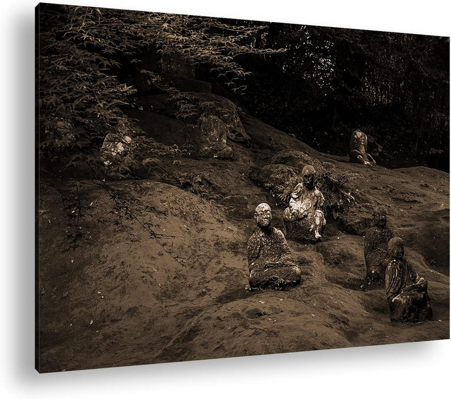 deyoli mit Moos bedeckte Buddha-Statuen Effekt: Sepia, Format: 80x60 als Leinwandbild, Motiv fertig
