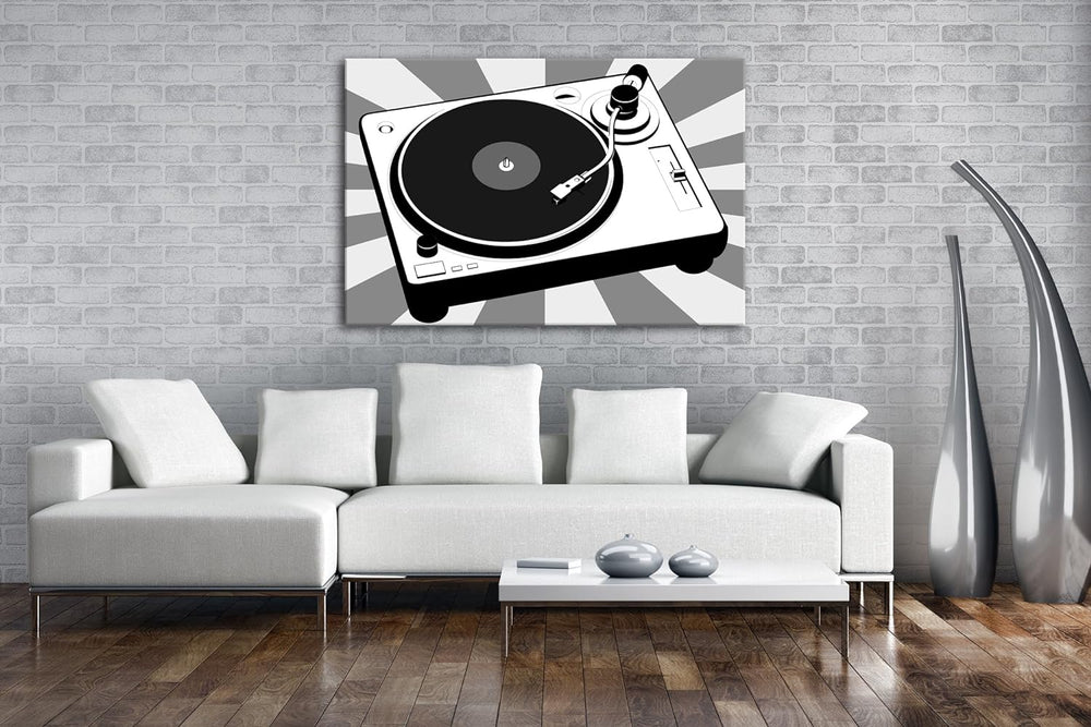 deyoli moderne Drehscheibe für Musik im Format: 80x60 als Leinwandbild, Motiv fertig gerahmt auf Ech