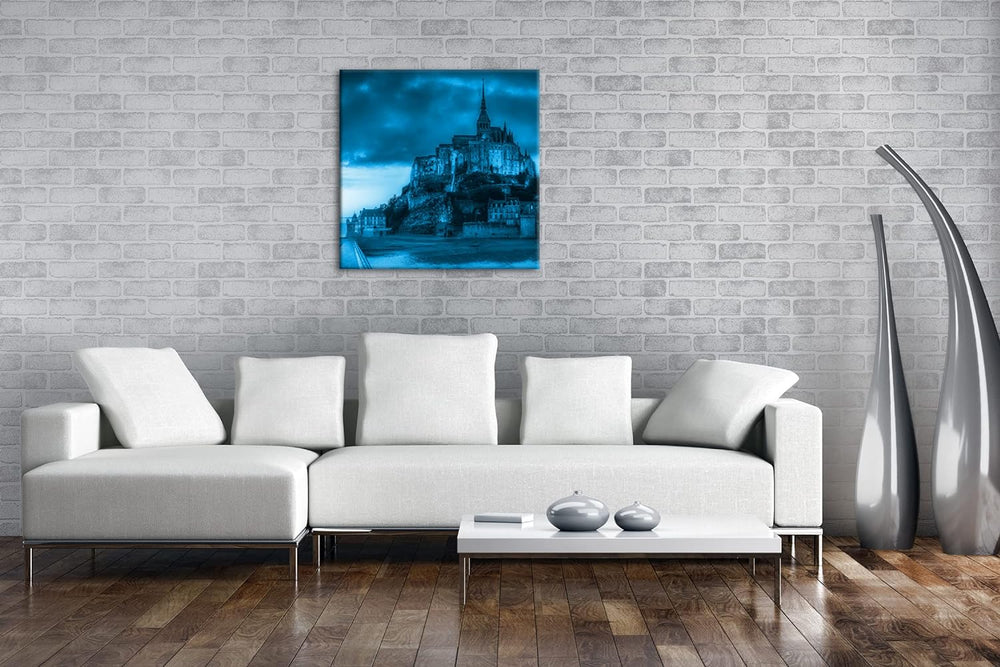 deyoli Mont St Michel bei Sonnenuntergang Format: 70x70 Effekt: Monocrome Blau als Leinwandbild, Mot