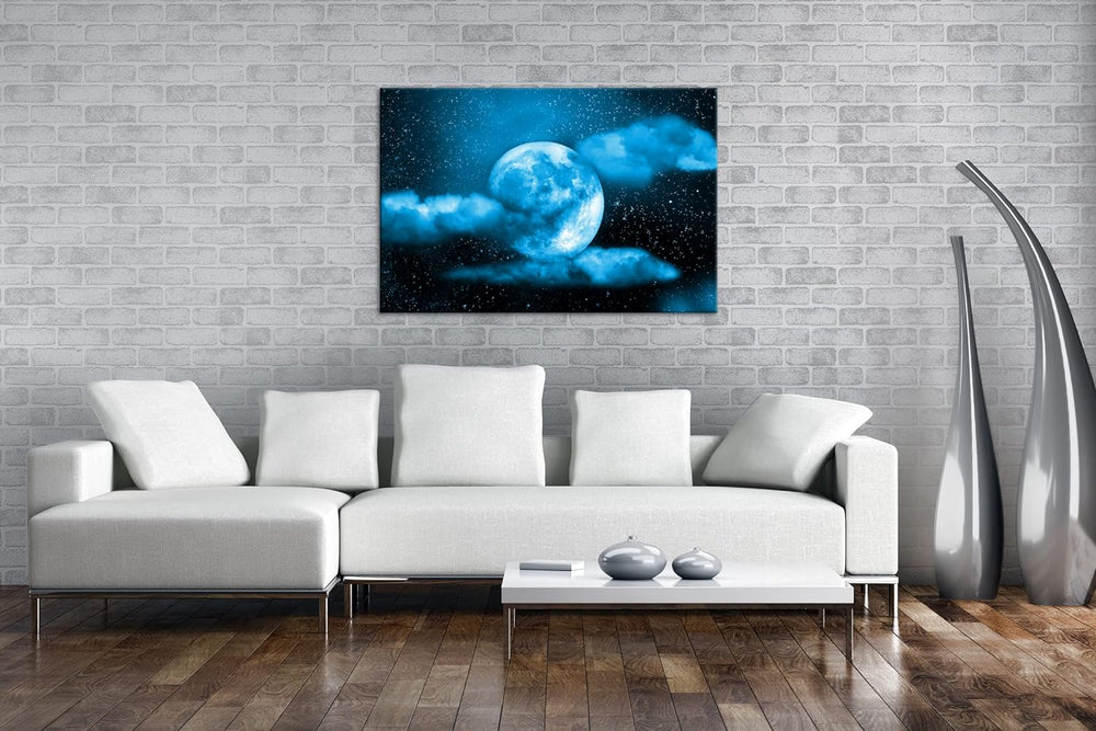 deyoli Mond am bewölkten Nachthimmel Format 80x60 Effekt: Monocrome Blau als Leinwandbild, Motiv fer