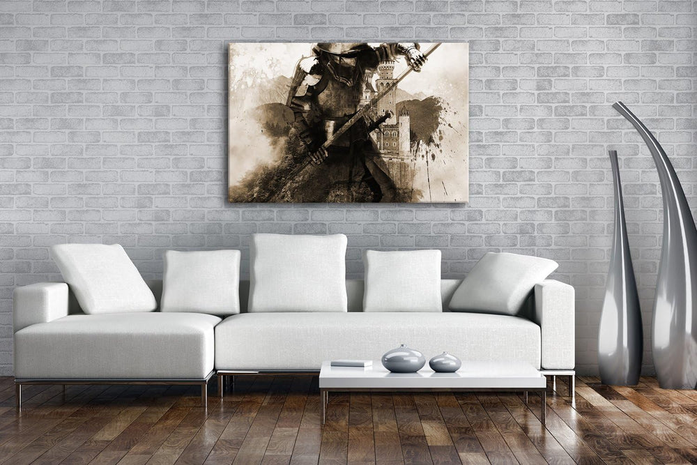 deyoli Mittelalter - Illustration Format: 100x70 Effekt: Schwarz/Weiss als Leinwandbild, Motiv ferti