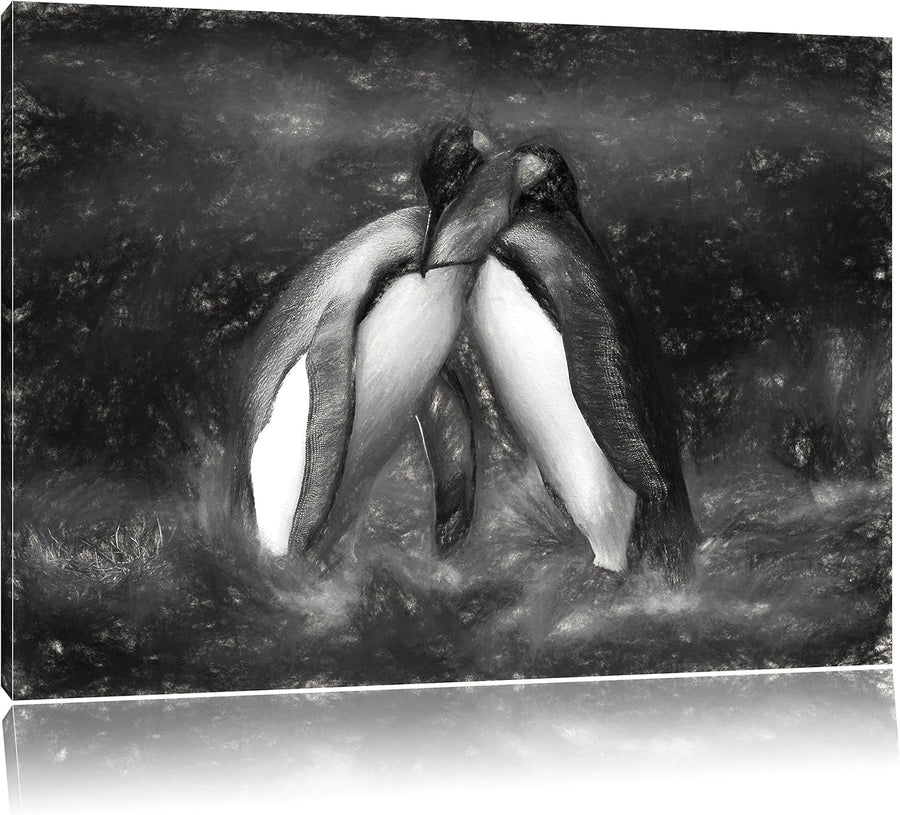 Pinguin Kuss, Format: 70x70 auf Leinwand, XXL riesige Bilder fertig gerahmt mit Keilrahmen, Kunstdru