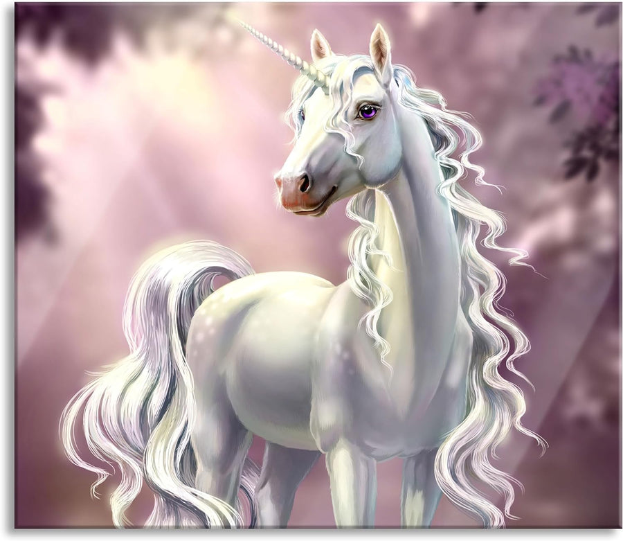 Pink äugiges Einhorn im rosa Märchenwald Herdabdeckplatte & Spritzschutz aus Echtglas | Für Herd-Koc