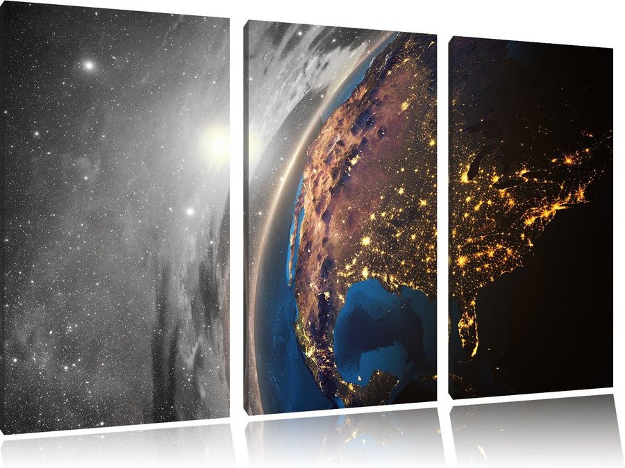 Pixxprint 3D-Rendering von detaillierten bunten Erde B&W Detail 3-Teiler Leinwandbild 120x80 Bild au