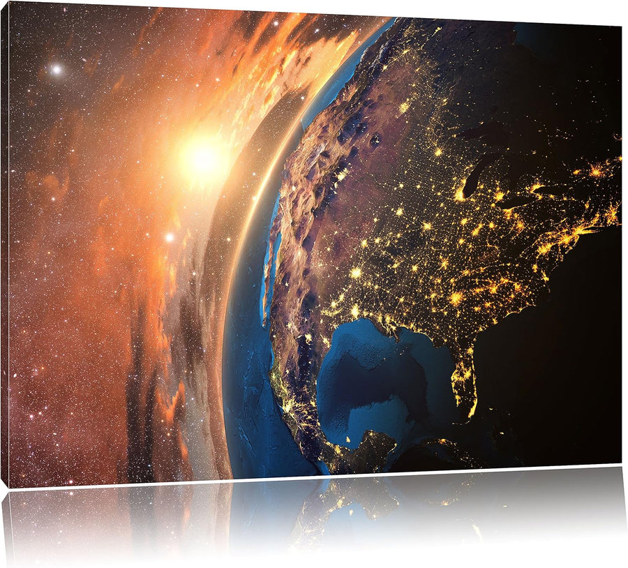 Pixxprint 3D-Rendering der Erde als Leinwandbild/Grösse: 100x70 cm/Wandbild/Kunstdruck/fertig bespan