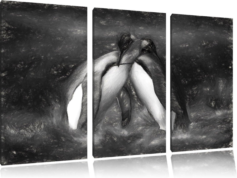 Pinguine als Leinwandbild | Grösse: 3 Teilig (120x80) | Wandbild| Kunstdruck | fertig bespannt