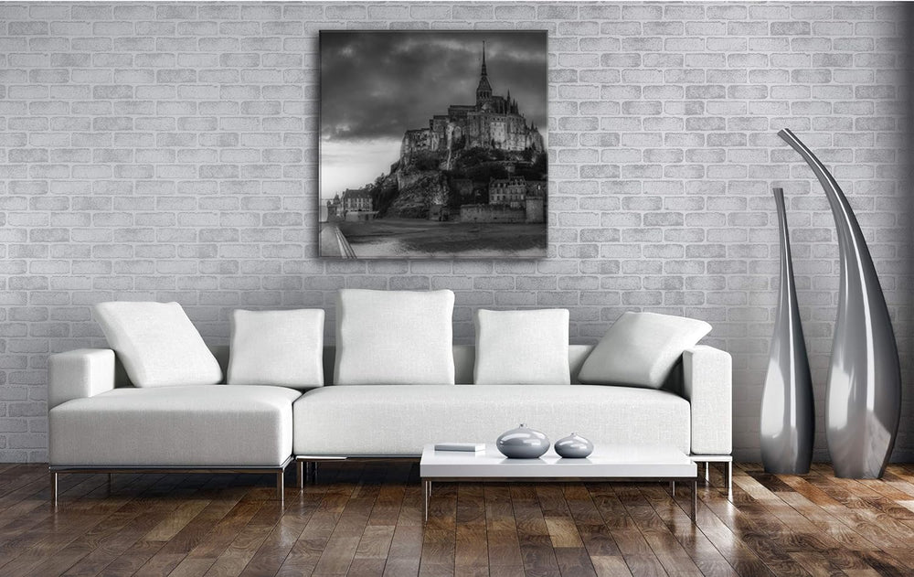 deyoli Mont St Michel bei Sonnenuntergang Format: 70x70 Effekt: Schwarz&Weiss als Leinwandbild, Moti