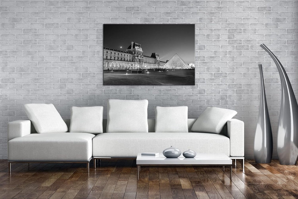 deyoli Museums Pyramide in Paris Effekt: Schwarz&Weiss Format: 80x60 als Leinwandbild, Motiv fertig