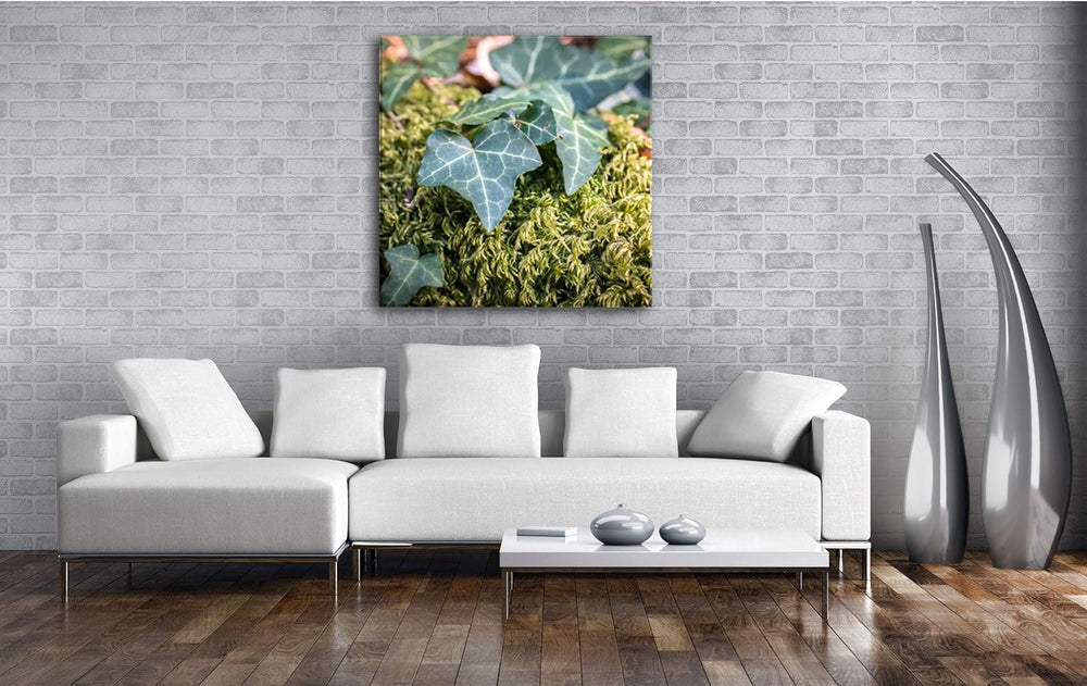 deyoli Moos und Efeu bedeckter Boden Format: 70x70 als Leinwandbild, Motiv fertig gerahmt auf Echtho