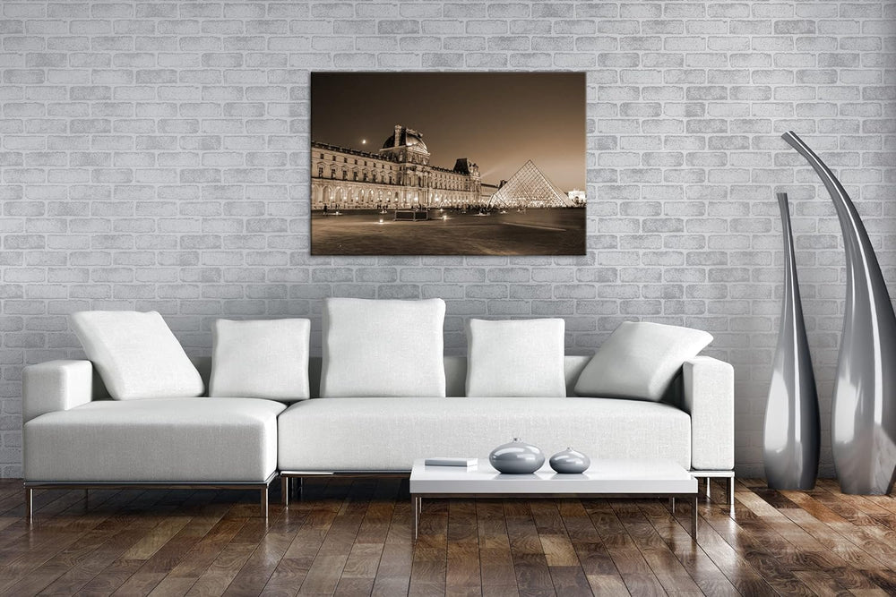 deyoli Museums Pyramide in Paris Effekt: Sepia Format: 80x60 als Leinwandbild, Motiv fertig gerahmt