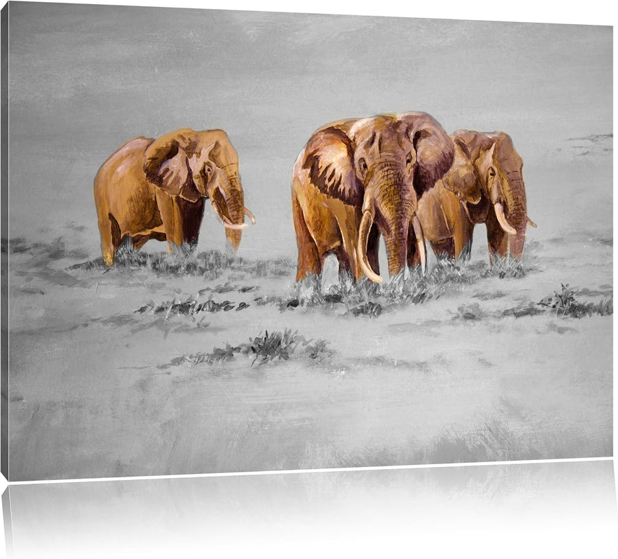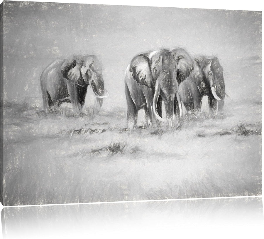 Pixxprint Afrikanische Elefanten in Südafrika Kunst Kohle Effekt, Format: 100x70 auf Leinwand, XXL r
