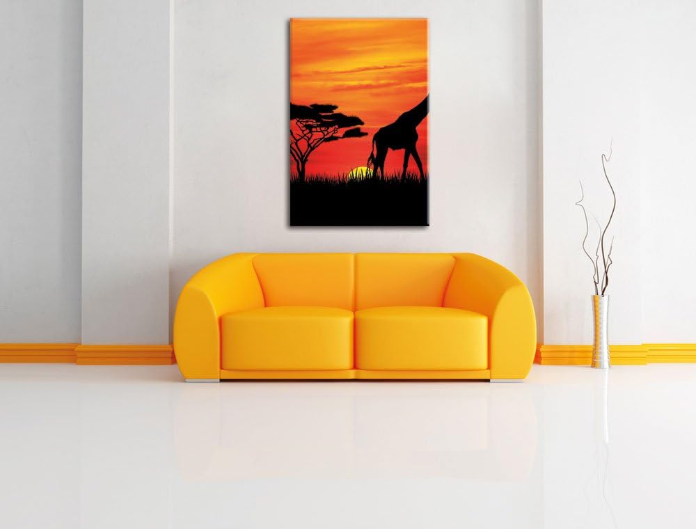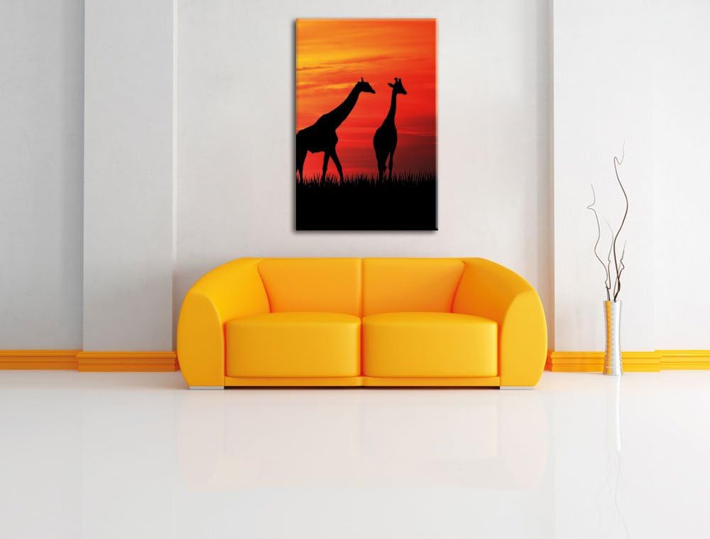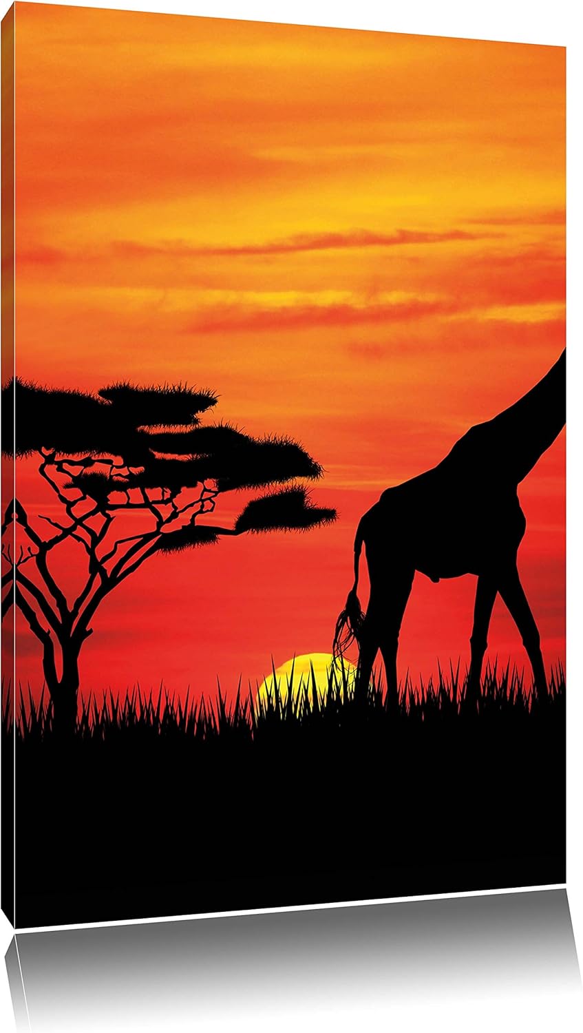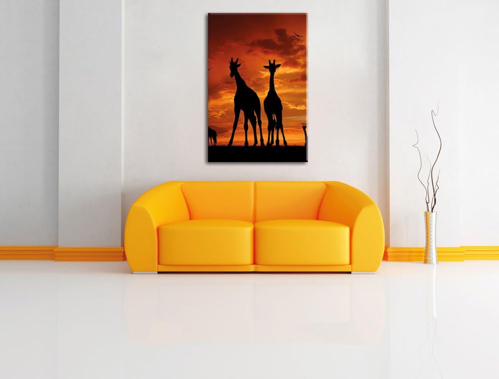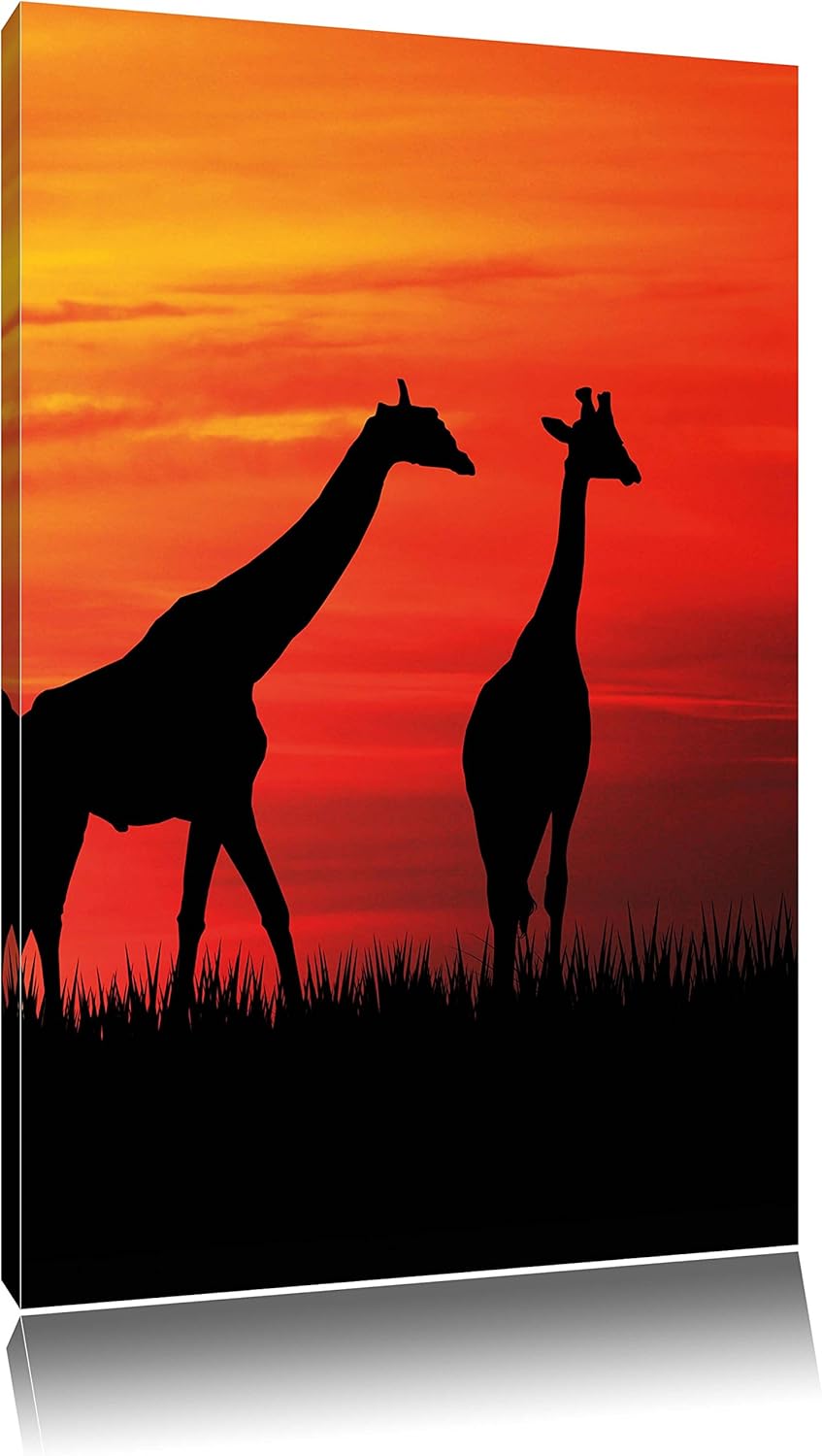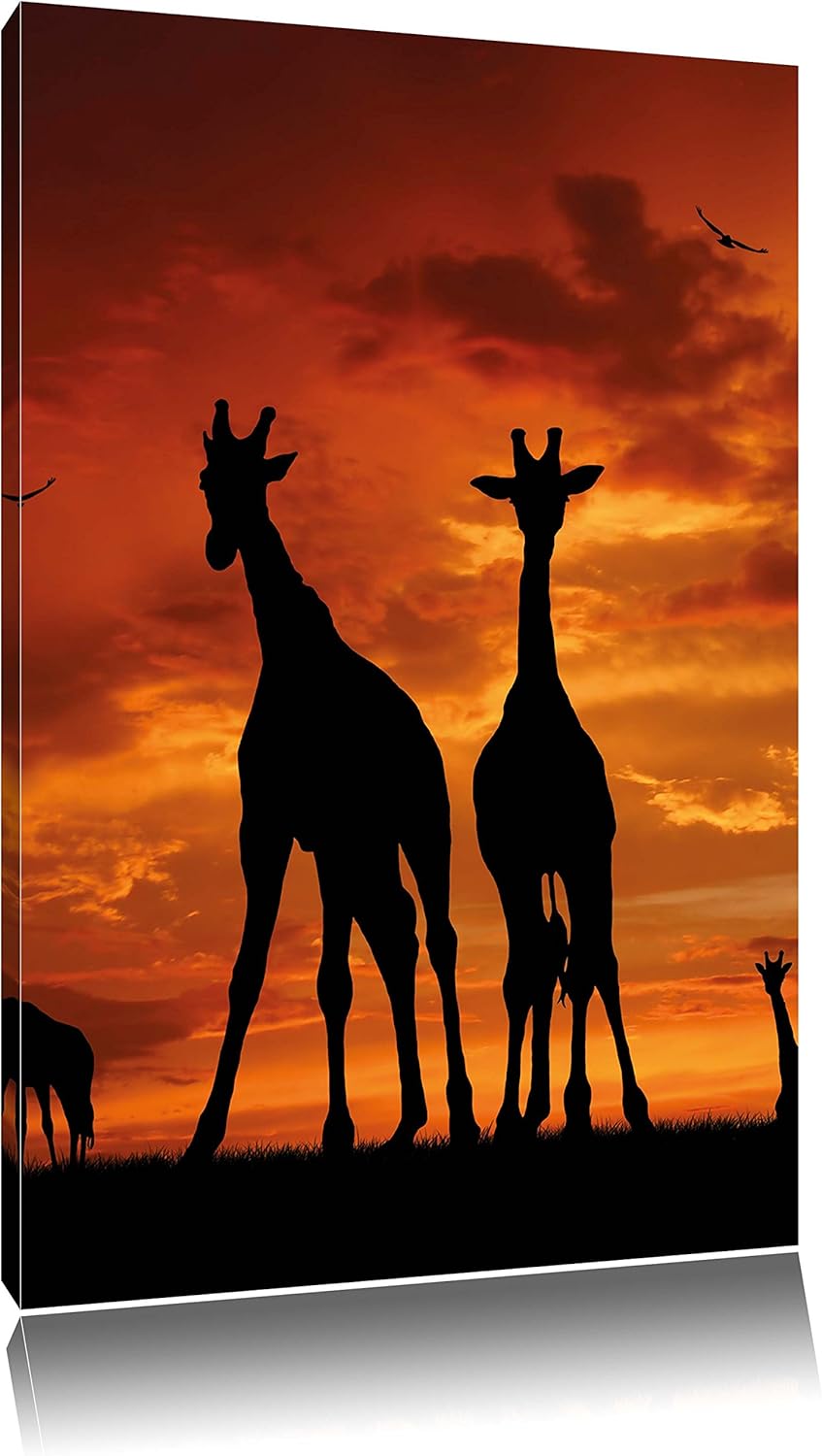 Pixxprint Afrika Giraffen im Sonnenuntergang / 100x70cm Leinwandbild bespannt auf Holzrahmen/Wandbil