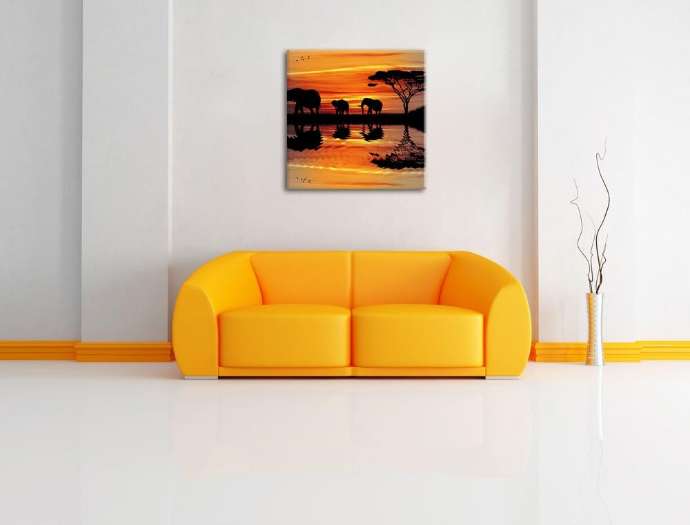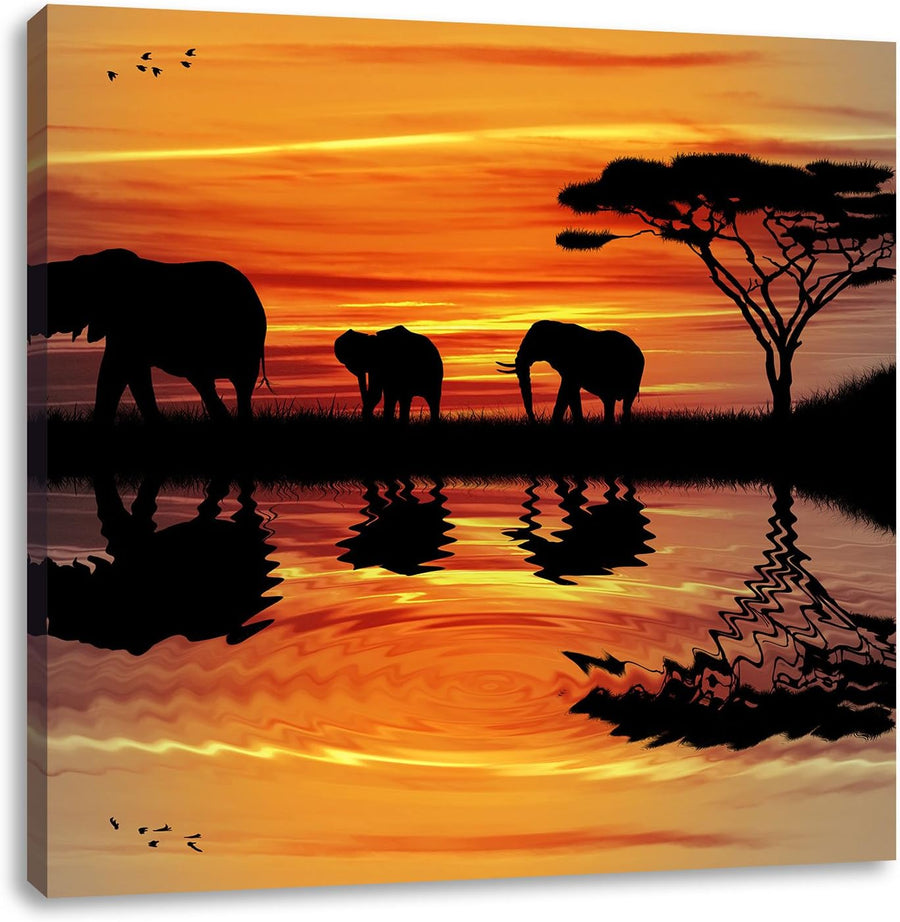 Pixxprint Afrika Elefant in Sonnenschein/Format: 120x80cm / Leinwandbild fertig bespannt Wandbild Ku