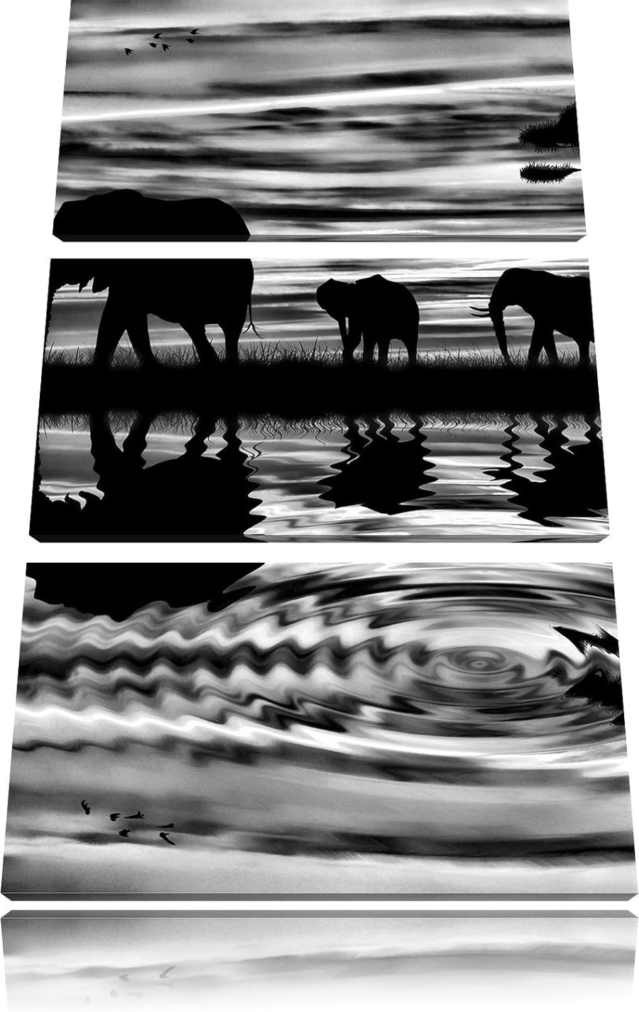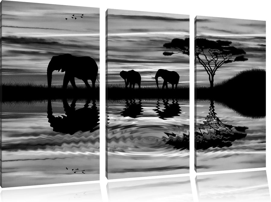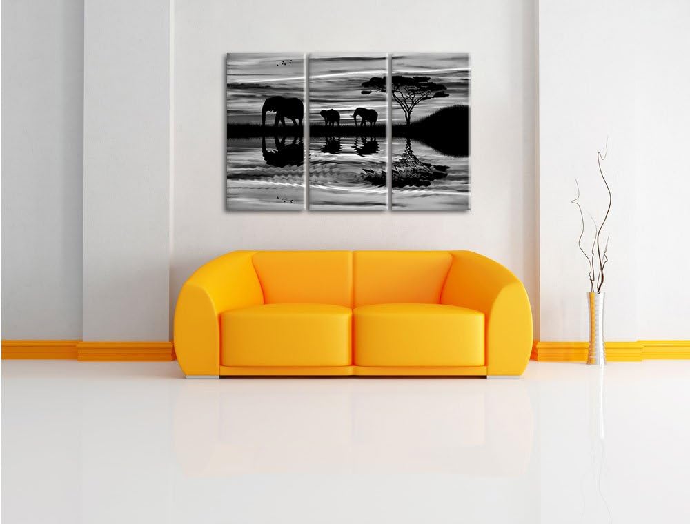 Pixxprint Afrika Elefant in Sonnenschein als Leinwandbild/Grösse: 3 Teilig (120x80) cm/Wandbild/Kuns