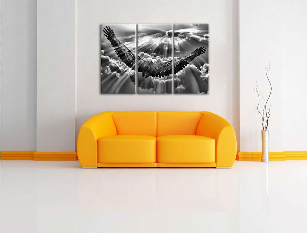 Pixxprint Adler über den Wolken als Leinwandbild/Grösse: 3 Teilig (120x80) cm/Wandbild/Kunstdruck/fe