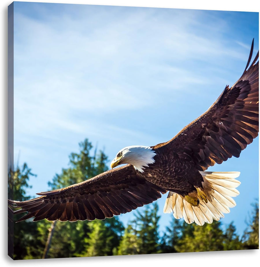 Pixxprint Adler, Format: 70x70 auf Leinwand, XXL riesige Bilder fertig gerahmt mit Keilrahmen, Kunst