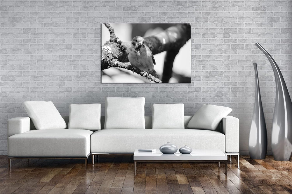 deyoli neugieriger Vogel Format: 80x60 Effekt: Schwarz&Weiss als Leinwandbild, Motiv fertig gerahmt