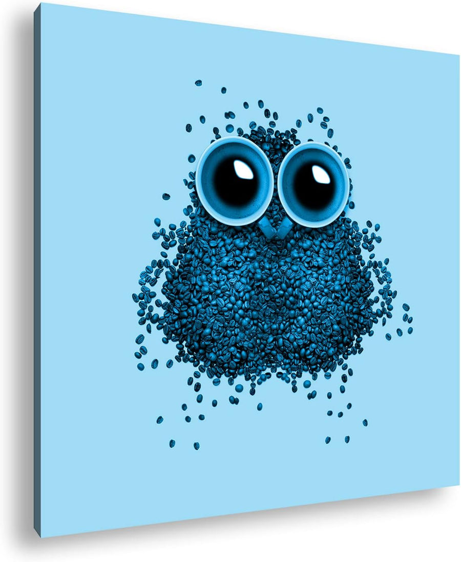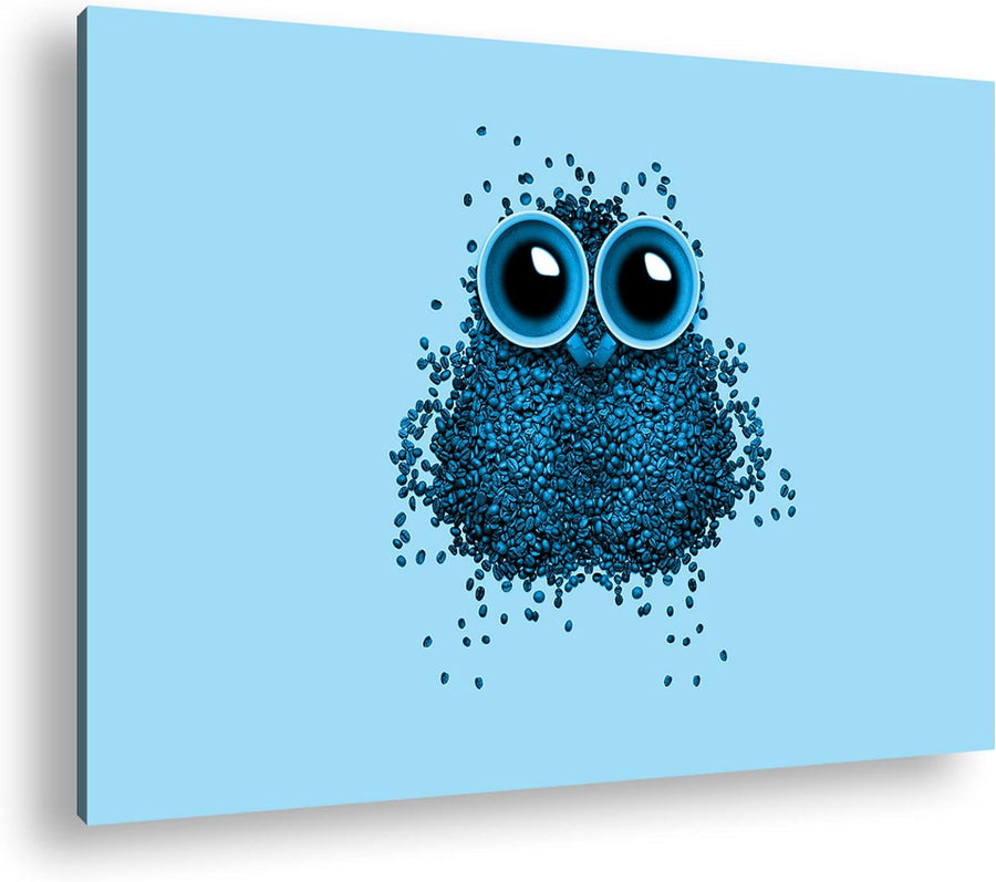 deyoli niedliche Eule aus Kaffeebohnen Format 80x60 Effekt: Monocrome Blau als Leinwandbild, Motiv f