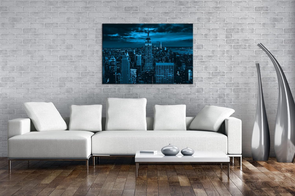 deyoli New York bei Nacht Format: 80x60 Effekt: Monocrome Blau als Leinwand, Motiv fertig gerahmt au