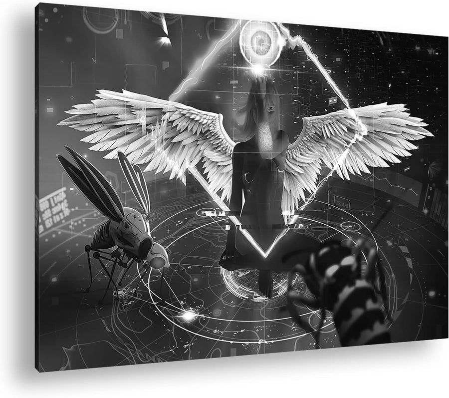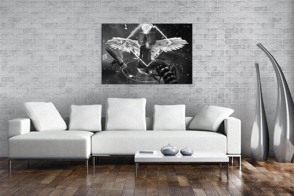 deyoli Neon Engel Format: 80x60 Effekt: Schwarz&Weiss als Leinwandbild, Motiv fertig gerahmt auf Ech