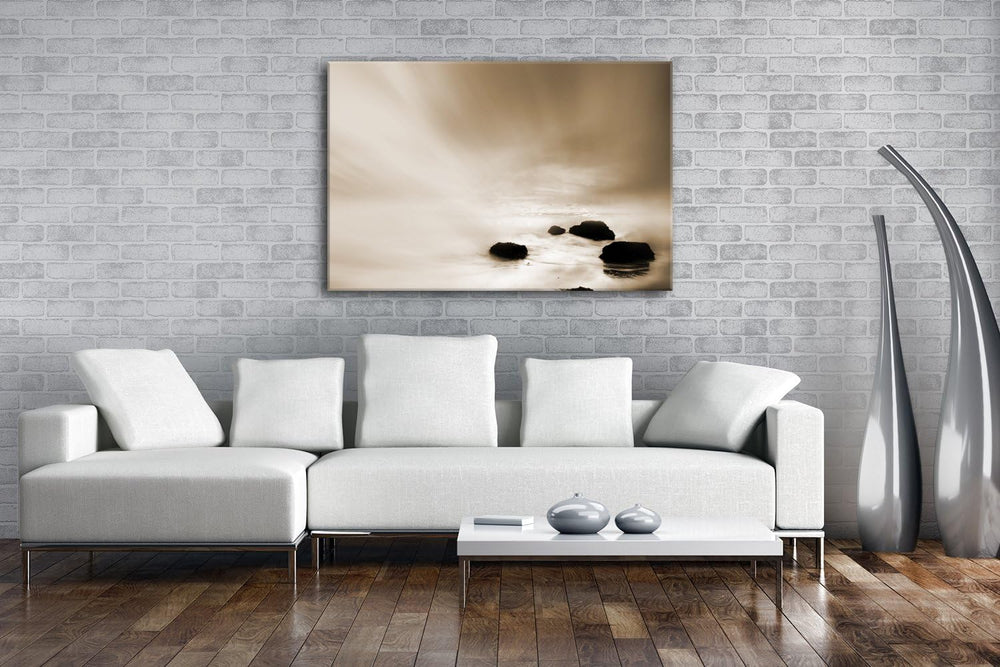 deyoli neblischer Sandstrand Format: 80x60 Effekt: Sepia als Leinwand, Motiv fertig gerahmt auf Echt