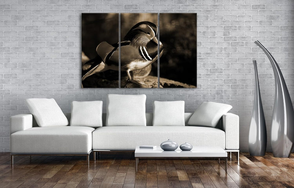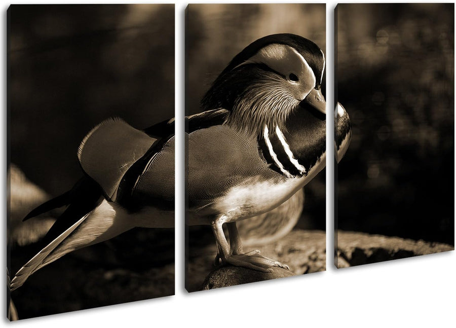 deyoli niedliche Holzente Format: 3-teilig 120x80 Effekt: Sepia als Leinwandbild, Motiv fertig gerah