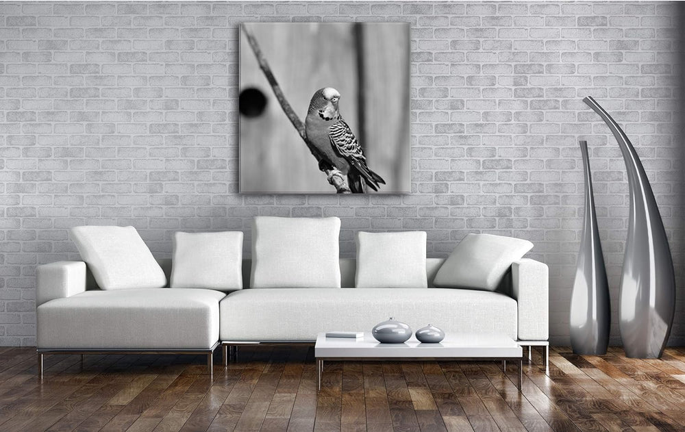 deyoli niedlicher Wellensittich Format: 70x70 Effekt: Schwarz&Weiss als Leinwandbild, Motiv auf Echt