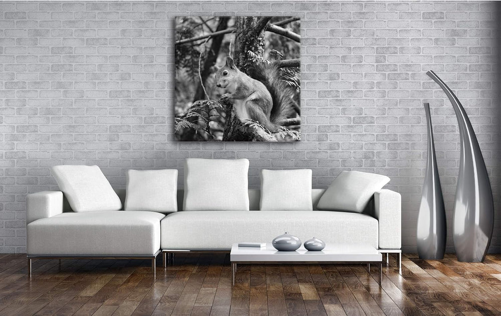 deyoli niedliches Eichhörnchen Format: 70x70 Effekt: Schwarz&Weiss als Leinwandbild, Motiv fertig ge