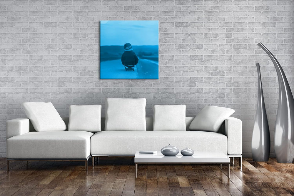 deyoli niedlicher Skater bei Sonnenuntergang Format: 60x60 Effekt: Monocrome Blau als Leinwandbild,