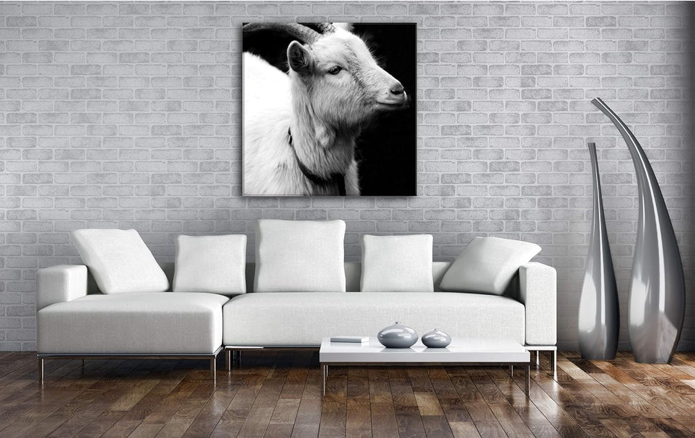 deyoli niedliche kleine Ziege Format: 70x70 Effekt: Schwarz&Weiss als Leinwandbild, Motiv fertig ger