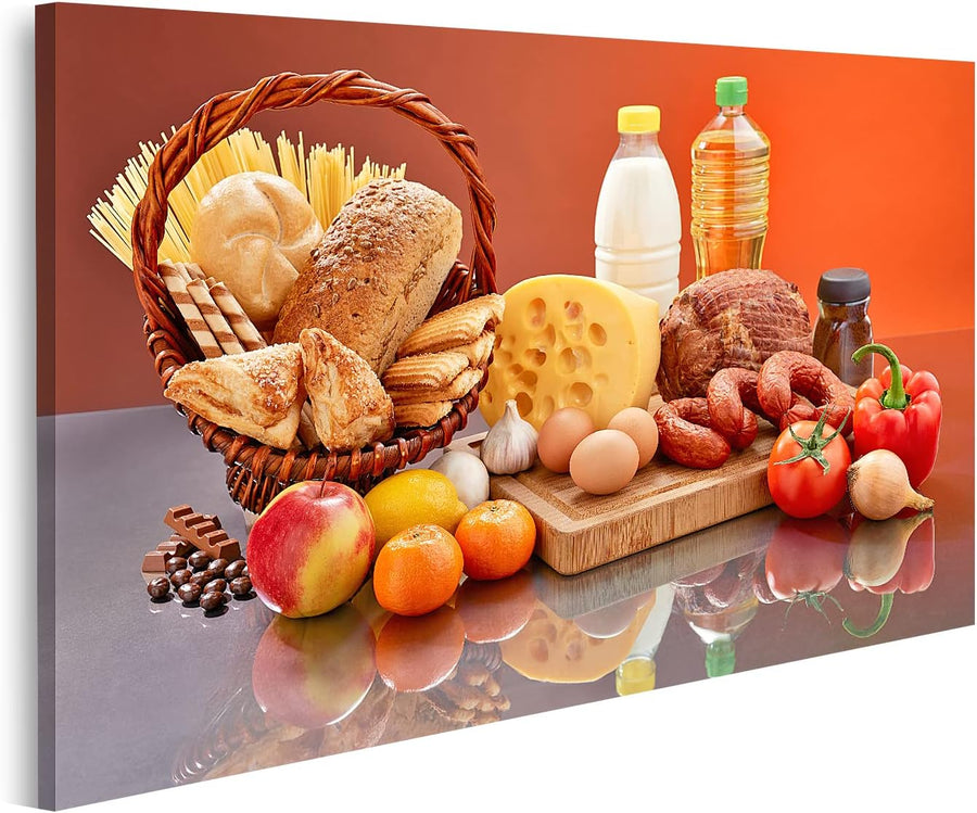 islandburner Bild auf Leinwand Variation Von Lebensmitteln Mit Schneidebrett Und Korb Bilder Wandbil