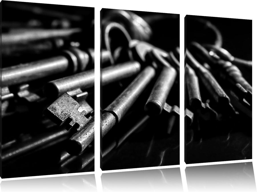 Pixxprint Alter Schlüsselbund / 3-Teilig/Gesamtmass 120cm Leinwandbild bespannt auf Holzrahmen/Wandb
